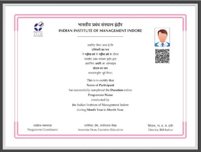 Note: All certificate images are for illustrative purposes only and may be subject to change at the discretion of IIM Indore.
